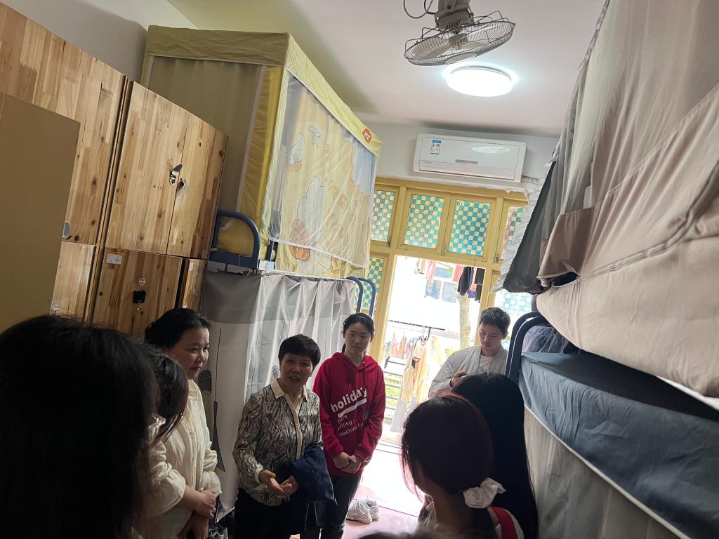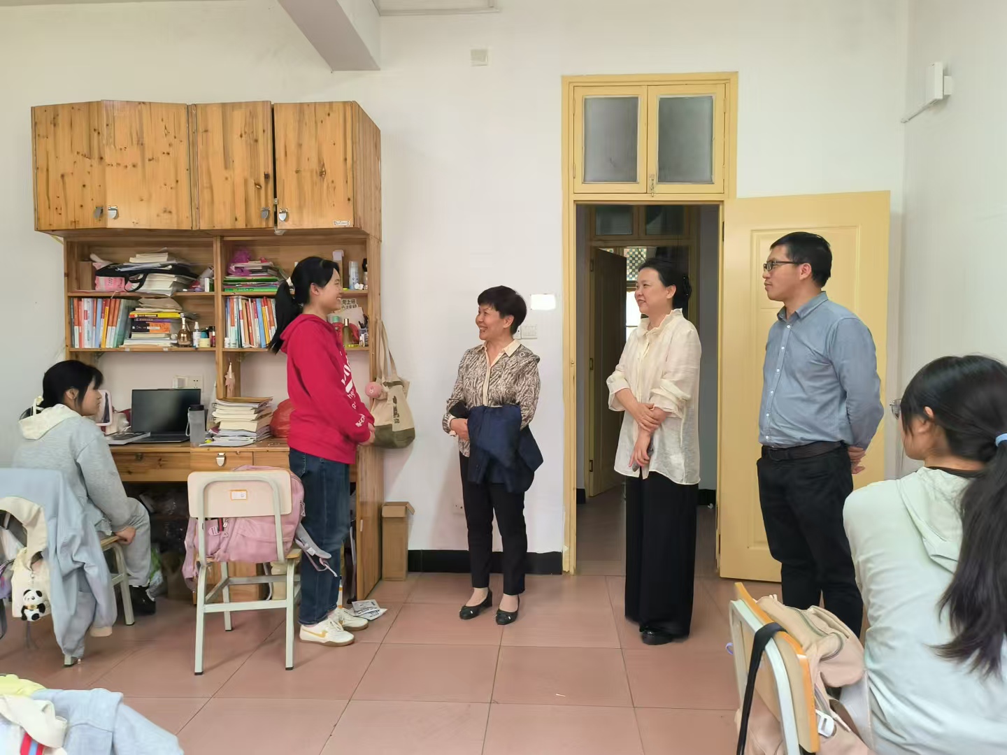 随后,丁文查看了学生宿舍布局功能、设施设备、卫生状况等情况,提醒大家注意用电安全、提高消防意识,确保宿舍安全。她还对日常生活中如何过好紧日子提出了相关建议。