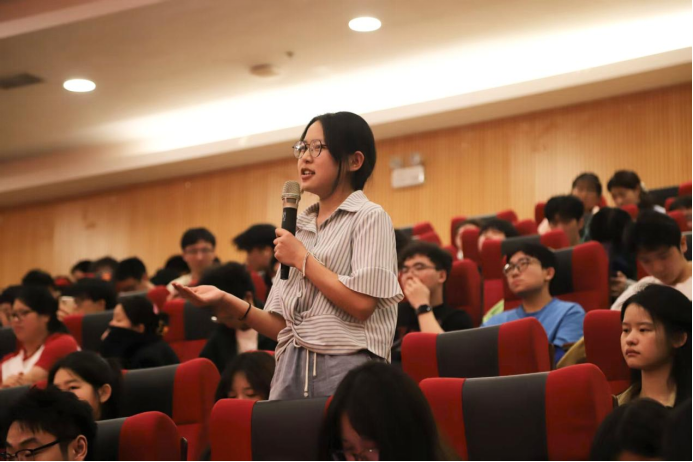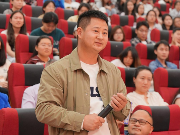 在提问环节,四位同学分别就立法体制改革、家国关系、农村留守儿童教育及人才培养等问题与苏力教授展开交流。针对当前社会关注的家庭关系议题,苏力教授指出:“大国治理需兼顾中央与地方积极性,立法应尊重社会实际需求。”对于农村教育问题,他提出“受教育程度只是一个方面”,鼓励学生通过多渠道获取知识。关于人才与团队的关系,他特别强调:“真正的才华需与国家发展同频共振,名人不等同于人才。”