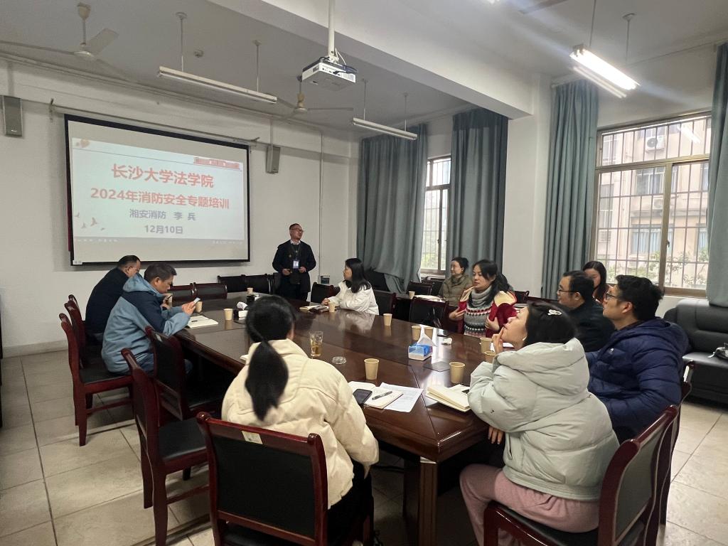 为构建平安和谐校园,进一步增强校园消防安全防范意识和逃生自救能力,12月10日下午,法学院在涵虚楼A1404开展了消防知识培训。培训由湘安消防李兵教官主讲,法学院在校教师参加培训。