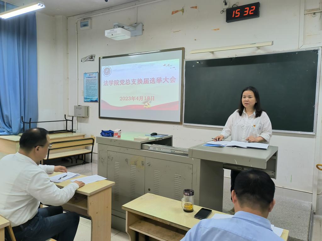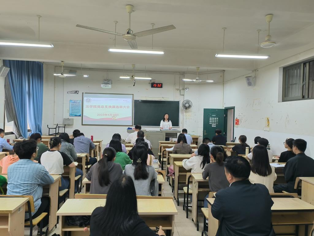 根据学校党委统一部署,4月18日下午,法学院在涵虚楼A1402教室召开了中国共产党长沙学院法学院总支部委员会换届选举党员大会。学院43名师生党员(含预备党员)出席会议,其中有选举权的正式党员31名。胡卉明同志主持换届选举大会。