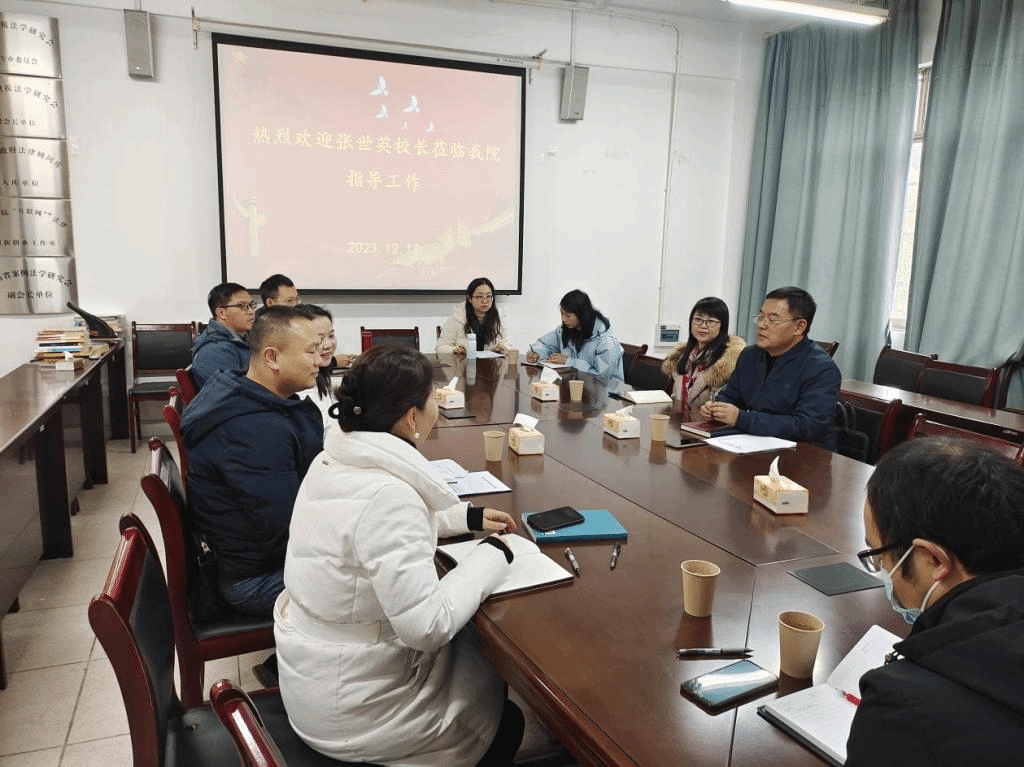 12月12日上午,党委委员、副校长张世英到法学院调研指导工作。科技处处长陈艳,法学院党总支书记胡卉明、副书记廖生成,法学院副院长龙龙、韩敬以及各教研室主任、青年教师等参加调研工作会议。会议由胡卉明主持。