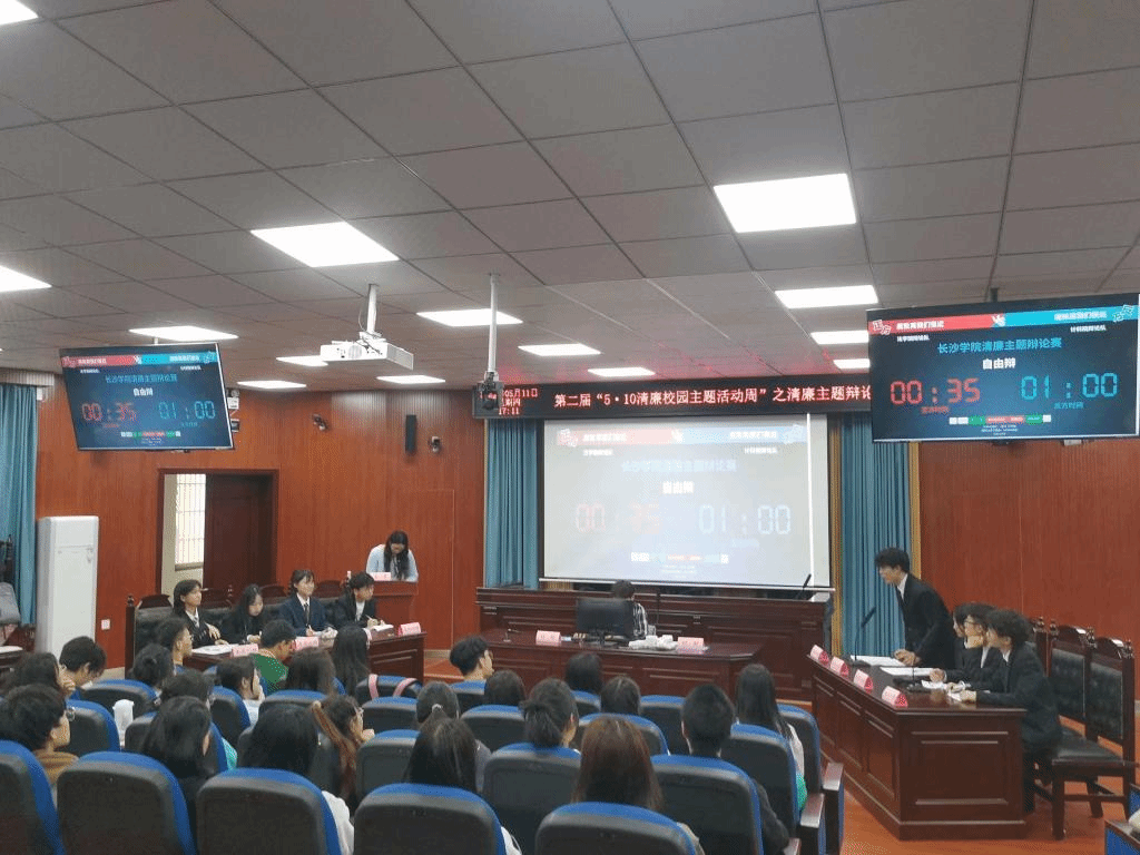 为优化校园廉洁文化,引导学生崇善尚廉,培养尊敬廉洁人物、推崇廉洁行为的道德观念,营造以廉为荣、以贪为耻的良好校园环境,促进大学生健康成才成长。5月11日下午,由长沙学院纪委办公室、法学院与计算机科学与工程学院共同主办的第二届“5·10清廉校园主题活动周”之清廉主题辩论赛在涵虚楼A多1模拟法庭教室举行。党委委员、纪委书记丁文以及纪委办、法学院和计科院部分党政班子成员及专任教师、学生辅导员、学生代表等出席了此次活动。活动通过法学院“法意人生”抖音号和计科院“辅导员和他的小伙伴们的直播间”抖音号现场直播。
