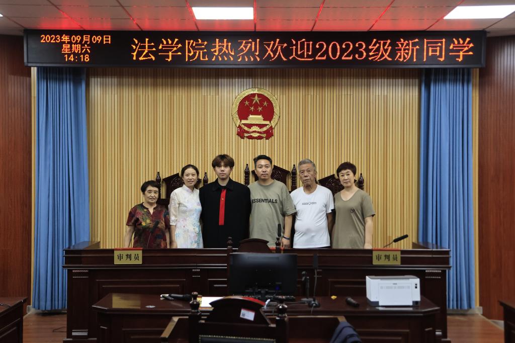 为了帮助新生更快地融入大学生活,学院还组织了一系列丰富多彩的活动。如参观模拟法庭、举办主题班会等,激发新生对法学的学习兴趣,也让他们对大学生活有更加全面的了解。“同学,你为什么选择法学专业?”“我想要以自己的力量捍卫法律的尊严。”学院关工委副主任戴开柱教授也来到了模拟法庭与23级新生交谈,新生们积极表达了自己关于法律的理想,并在模拟法庭合影留念。