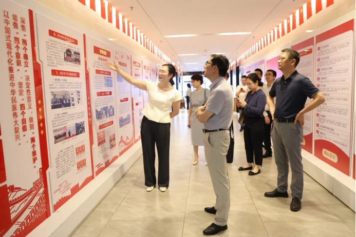 仪式开始前,在喻孟良的讲解下,童伟华院长一行参观了律所的荣誉墙、模拟法庭、律所文化长廊和党建室等区域,对律所有了初步了解。