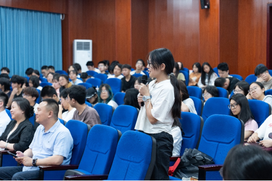 在互动提问环节,在场同学踊跃举手提问,围绕AIGC著作权保护及AI时代版权治理等方面的问题,与肖教授展开了深入的交流。肖教授针对同学们的提问逐一作出回应。