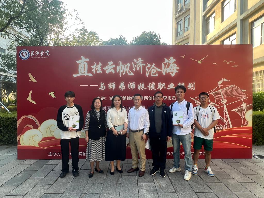 10月24日下午,我校优秀毕业生、湖南天楚律师事务所创始人李志员主任于涵虚楼模拟法庭为我院学生开展了以“直挂云帆济沧海”为主题的职业规划讲座。此次讲座由招生与就业指导处主办、法学院承办。招生与就业指导处黎文普、谷建春、法学院胡卉明等在家班子成员、辅导员、相关专任教师及22级全体学生出席活动。本次活动由廖生成主持。