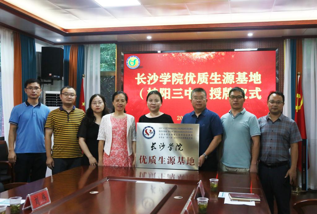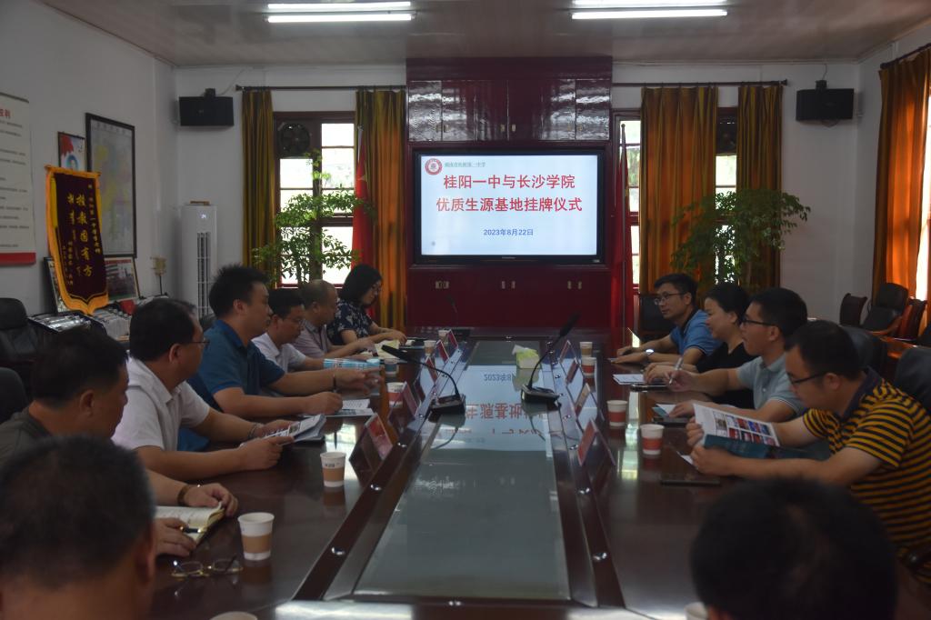 桂阳一中书记吴平文、桂阳三中书记何天宝分别致欢迎词并介绍了本校基本情况;与会人员共同观看了长沙学院招生宣传片;胡卉明简要介绍了学校、法学院相关情况,代表学校与两所学校签订了优质生源基地建设协议,并授予了“长沙学院优质生源基地”匾牌。两所学校书记分别接牌。与会老师进行了交流发言。最后,在其班子成员带领下参观了校园及校史馆。