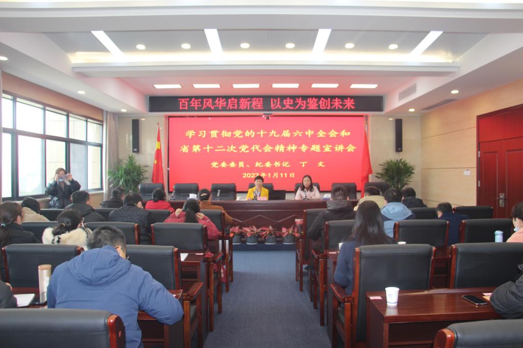 丁文书记的宣讲以《百年风华启新程 以史为鉴创未来》为题。她指出,在建党百年之际,党的十九届六中全会召开,全面总结了党的百年奋斗重大成就和历史经验,清晰展示了中国人民从苦难走向辉煌的中华民族伟大复兴艰辛历程和前进足迹,对中华民族今后前进方向、奋斗目标和战略谋划进行鲜明昭示。
