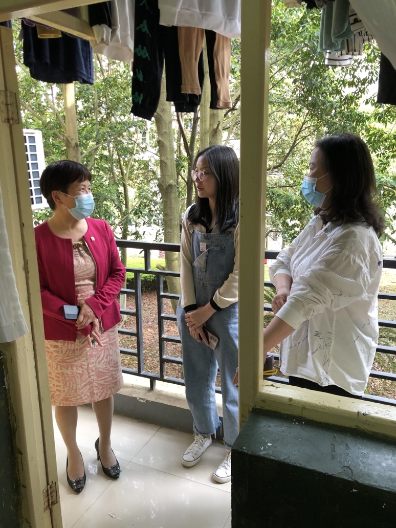 4月6日下午,学校党委委员、纪委书记丁文走访我院知行园区部分学生宿舍,看望慰问学生,了解学生在校日常生活情况,检查线上教学阶段宿舍学习情况,并送上殷切关怀和暖心慰问。在家班子成员陪同走访。