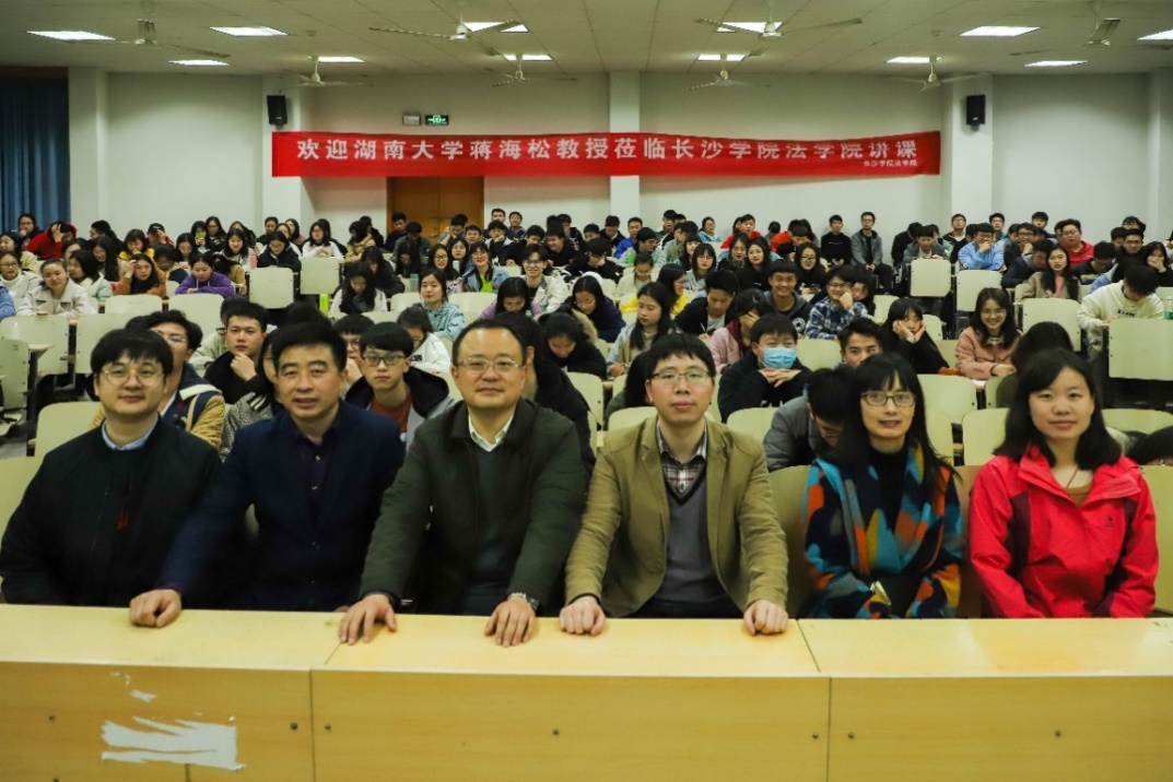 4月2日晚,由长沙学院法学院主办的《法说西游记》线下讲座在长沙学院涵虚楼隆重举办。讲座由湖南大学法学院副教授蒋海松主讲,长沙学院法学院院长张辉教授主持。教师代表蒋伟龙、刘琼瑶、蒋凤鸣、裴昊铭以及全校200余名师生参加讲座。