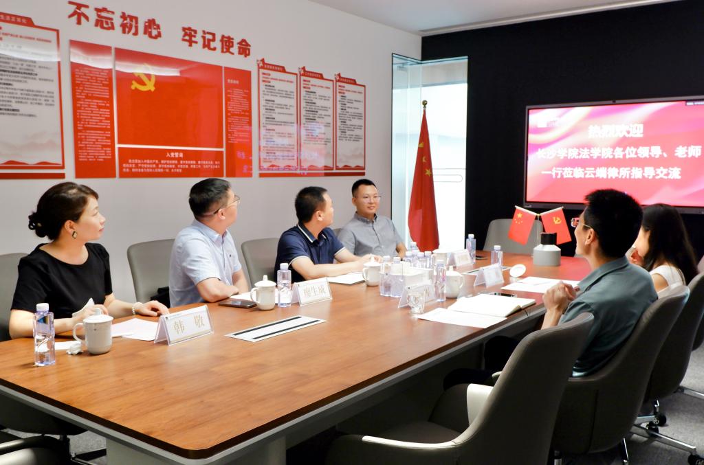 为加强我院与律所之间的联系,了解社会对法律人才的需求以及学生就业实习实践等情况,8月3日上午,我院廖生成、龙龙、韩敬、李明耀等一行4人前往湖南云端律师事务所开展了学习交流活动。湖南云端律师事务所主任袁军、合伙人黄丽等热情接待了老师们一行。
