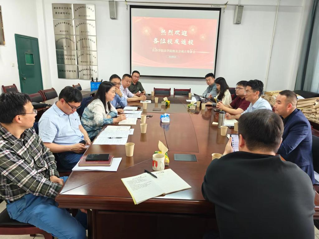 为凝聚法学院校友力量,促进校友与母校共同发展,4月19日上午,长沙学院法学院校友会筹备会第一次会议在涵虚楼A1404召开。长沙学院招生与就业指导处(校友会)处长黎文普、法学院党总支书记胡卉明,法学院院长童伟华,法学院党总支副书记廖生成参加会议。袁军、毛武、何焱、饶献、杨军、申广林、王振宇、夏冰清等校友代表出席会议。