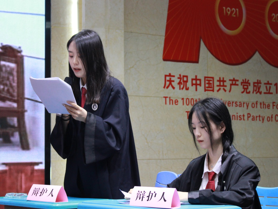 法学传播与研究协会成员在进行模拟法庭演出