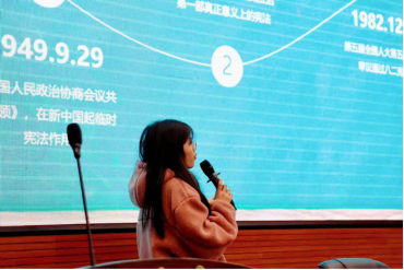 活动开始,余子静老师为同学们讲述“宪法的来源和内容”、“宪法的定义和意义”以及“怎样守法”。通过演示视频和幻灯片讲解,生动形象地向同学们展示了宪法的重要性。紧接着,湖南警察学院、湖南司法警官职校的老师以互动形式为同学们讲述“宪法是什么”与“如何用宪法保护自己”。三位主讲人的精彩的授课内容,充分调动了同学们的学习积极性。讲堂内气氛活跃,同学们各抒己见,纷纷表达了自己对于宪法的看法。