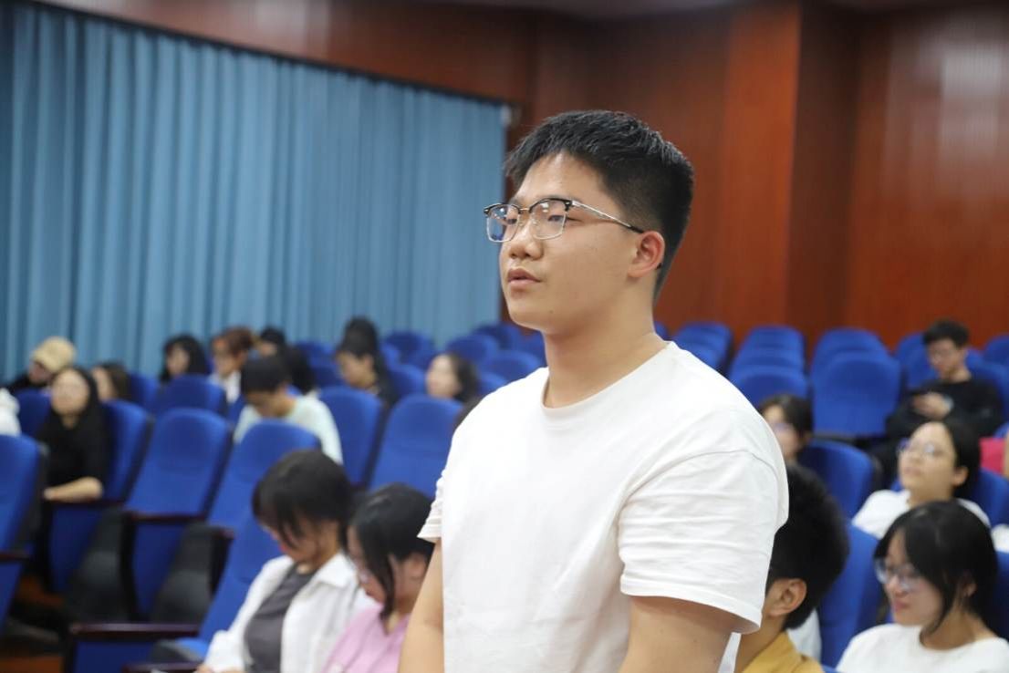 通过沉浸式视频,从历史瞬间到精神内核,为同学们讲透“两弹一星”精神的力量,深入感受其中蕴含的奋斗精神和爱国精神。最后,宣讲团以互动抽问的方式带大家回顾了重点内容,同学们积极应答,现场氛围热烈。