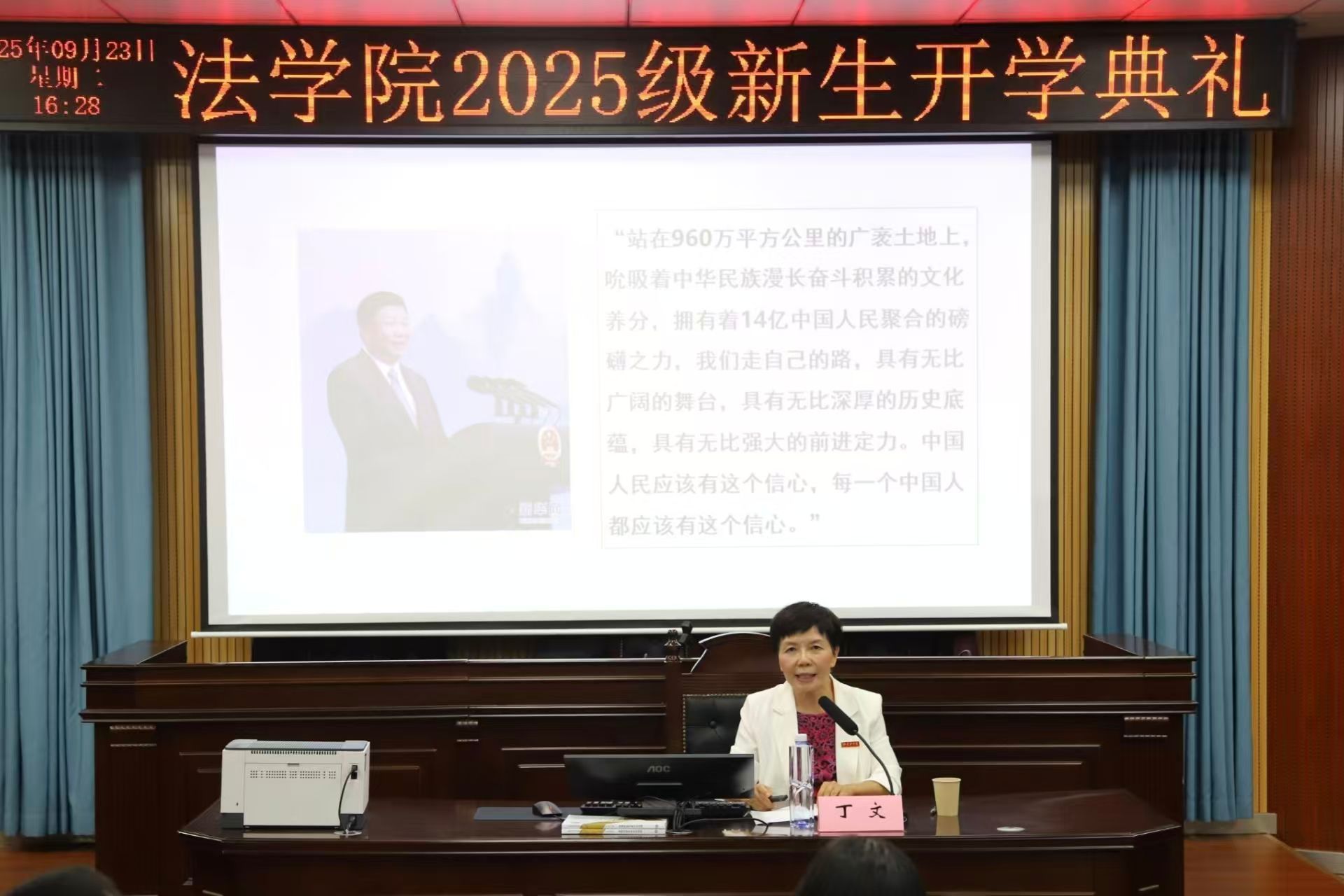 9月23日下午,长沙学院法学院模拟法庭内气氛热烈,25级新生齐聚一堂。长沙学院党委委员、纪委书记丁文以“建设社会主义文化强国”为主题讲授思政课,引导新生深刻认识文化价值、树立文化自信,明确青年在文化传承中的责任担当。