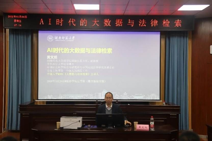 为提升法学专业学生实践能力,适应数字化时代法律行业发展需求,长沙学院法学院(数字版权学院)于3月25日晚7时在涵虚楼A多1模拟法庭举办“AI时代的大数据与法律检索”专题讲座。本次讲座由湖南师范大学法学院国际法系主任、国际法研究所所长、国家一流课程《大数据与法律检索》主持人黄文旭副教授主讲,我院副院长韩敬主持,学院师生代表参加。