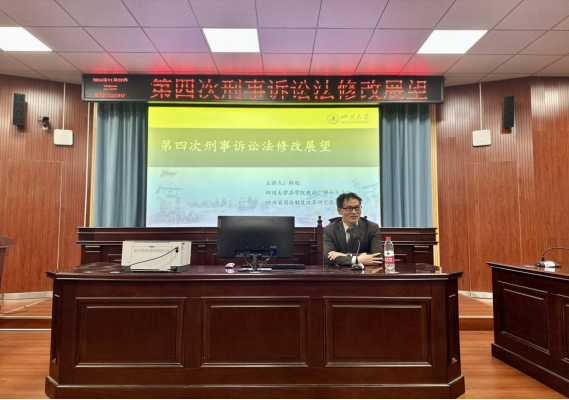 2024年11月7日晚7点,四川大学法学院教授、博士生导师、四川省司法制度改革研究基地主任韩旭教授应邀在法学院模拟法庭开展“第四次刑事诉讼法修改展望”主题讲座。本次讲座由院长童伟华教授主持,法学院共计160余名师生到场聆听。