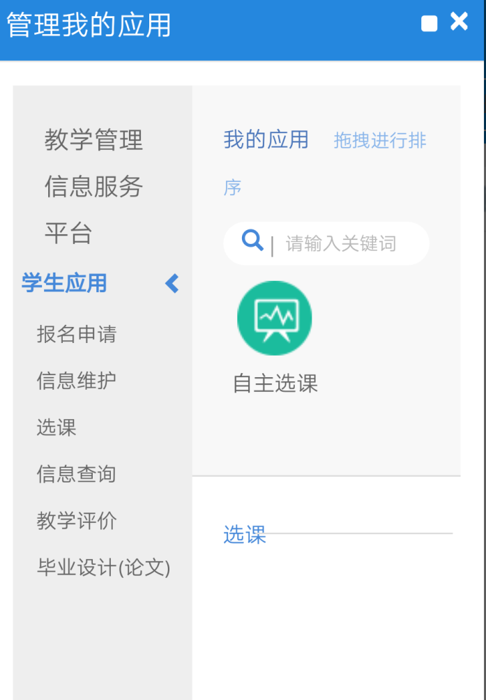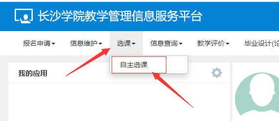 三、点击“选课”下的“自主选课”功能(电脑见图4或手机见图5),进入“自主选课”界面。