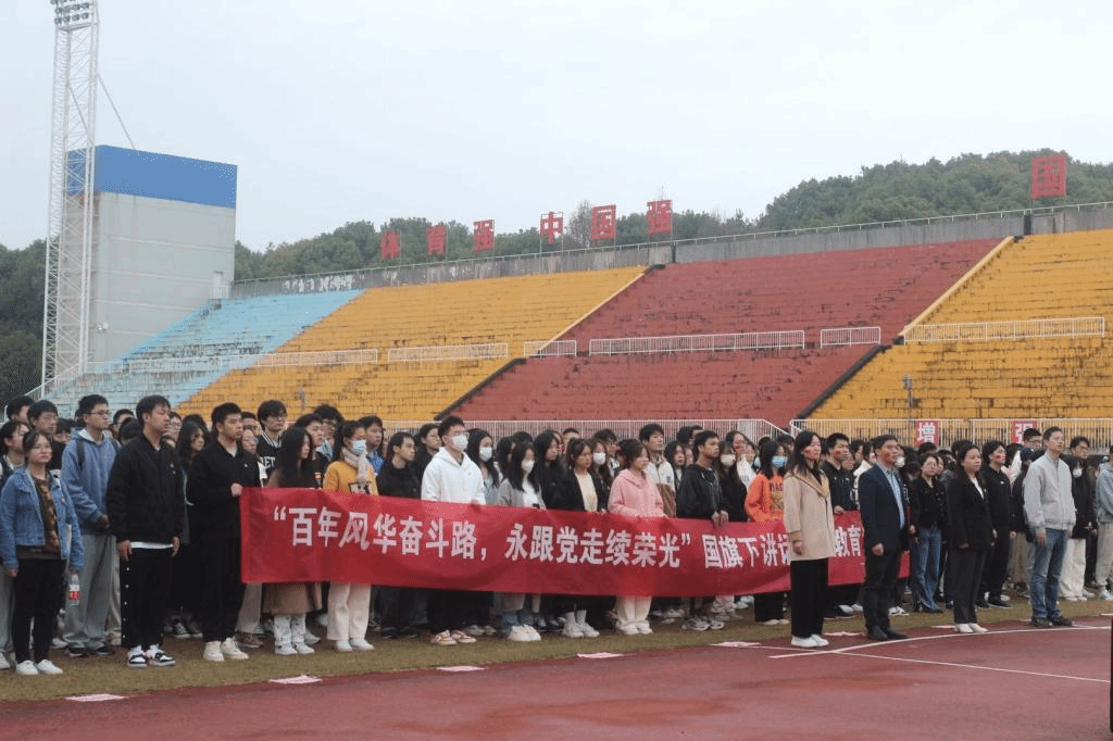为深入学习贯彻习近平新时代中国特色社会主义思想,引导广大团员青年筑牢跟党走的思想根基,以仪式教育增强对广大团员青年的思想政治引领和家国情怀,11月21日清早,法学院于天健体育场开展“百年风华奋斗路,永跟党走续荣光”国旗下的讲话主题教育活动。法学院党总支书记胡卉明、党总支副书记廖生成、团总支书记钱文良、辅导员张正东及20-22级全体同学参加本次的升旗仪式,22级张欣芮同学主持本次升旗仪式。