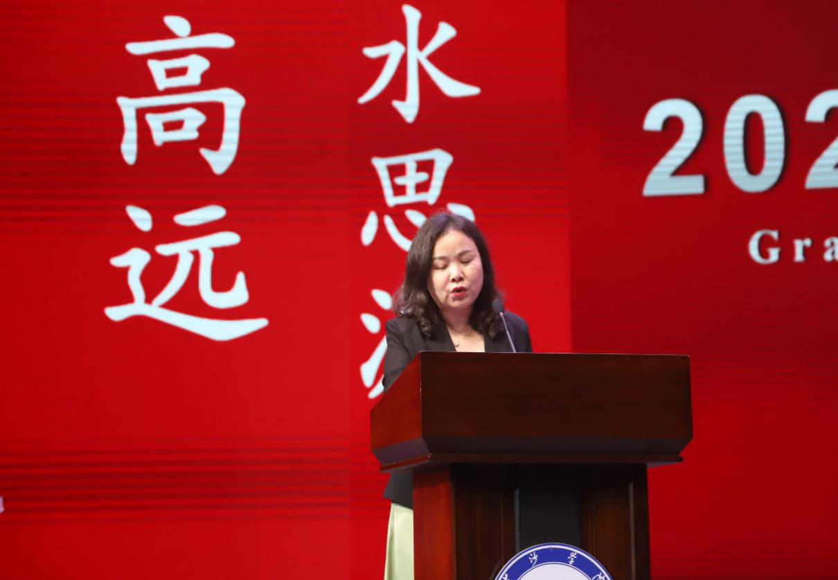 胡卉明首先代表学院向顺利完成本科学业的同学们表示热烈祝贺,向辛勤培育同学们的父母和老师致以衷心的感谢。她表示,恰同学少年,风华正茂,正是放飞梦想、挥斥方遒的好年华。希望同学们坚守人生底色,拓展人生格局。