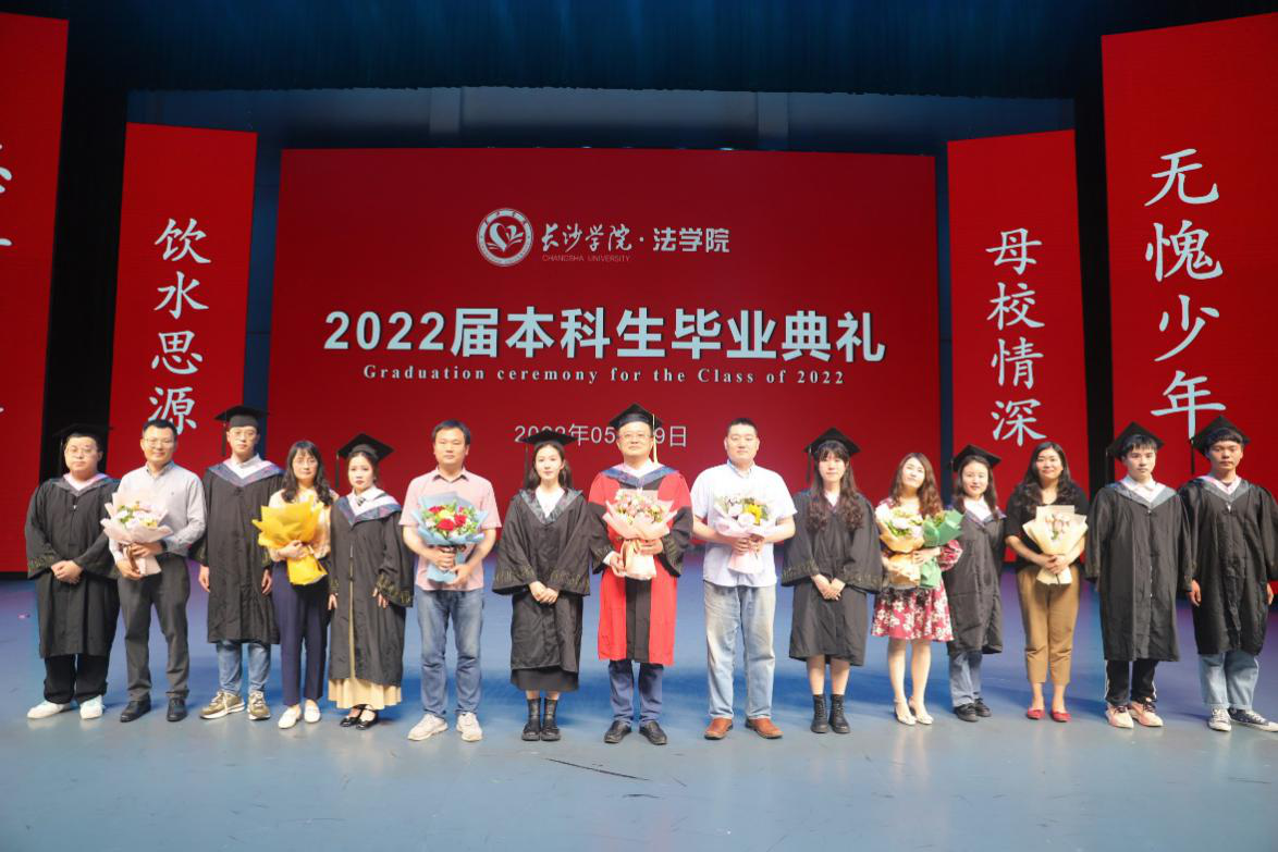 5月29日19时,法学院2022届本科生毕业典礼在学生活动中心举行。出席典礼活动的有:党总支书记胡卉明、院长张辉、党总支副书记廖生成、副院长梁耀东、副院长龙龙、18级学生辅导员张正东及教师代表。法学院学生会主席易凯、余子静主持了本次典礼。