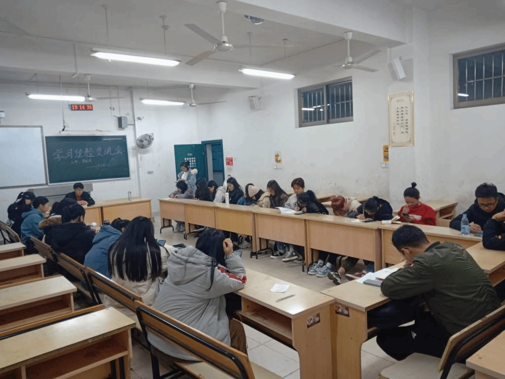 12月8日,我院组织19级全体学生于各班晚自习教室开展了学习经验交流会,分别由18级梁国庆、陈雅卓、汤飒爽、黄稳担任各班主讲人。
