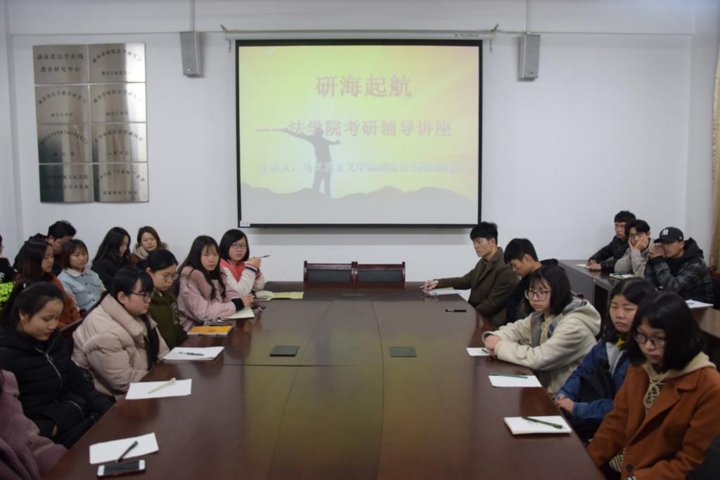 为给法学学子提供更好的考研指导,提高学习效率,法学院于3月18日晚举办了法学院考研辅导讲座。本次讲座邀请到了马克思主义学院副院长蒋晓东博士,讲座由法学院党总支副书记刘秋菊主持,15级部分同学到场学习。