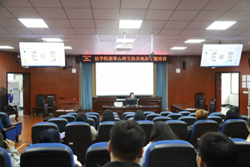 为建设好朋辈心理互助队伍,加强朋辈心理互助队伍对其工作内容的了解,我院于2024年10月22日下午,在涵虚楼模拟法庭开展了“朋辈心理互助队伍培训”,讲座主题为《大学生心理健康危机预防》,讲座围绕“大学生朋辈心理互助员的工作开展”和“大学生心理异常常见症状的识别与处理”两大主题展开。本次讲座由谭敏捷主讲。
