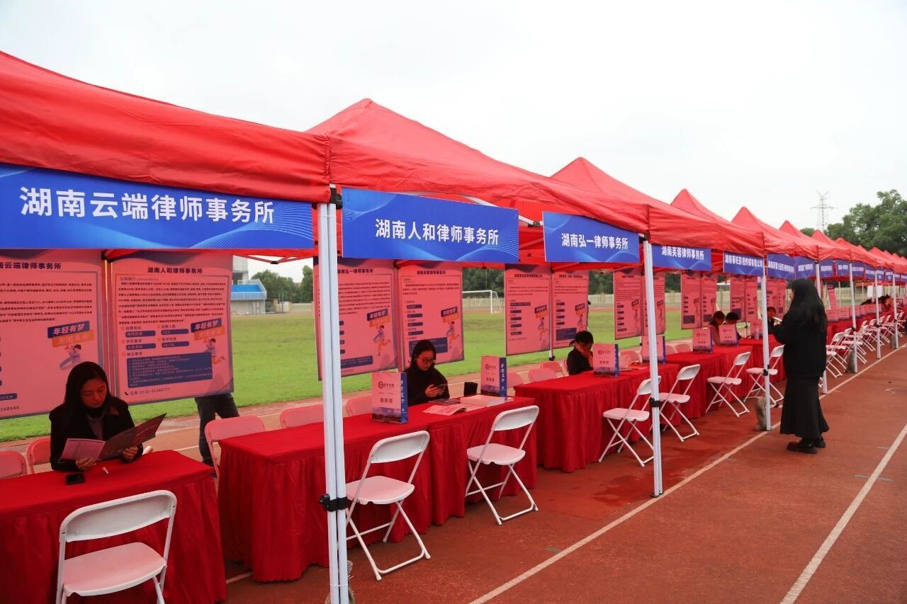 10月21日,法学院联合学校招就处于天健体育场举办2026届毕业生秋季大型双选会,旨在搭建高效公益对接平台,服务毕业生就业与湖南企业引才,助力湖南省人才战略和经济发展。学校党委委员、纪委书记丁文,法学院全体党政领导班子、教师代表及辅导员出席。