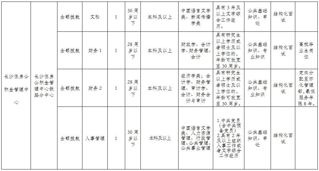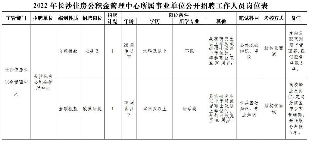 1、2022年长沙住房公积金管理中心所属事业单位公开招聘工作人员岗位表