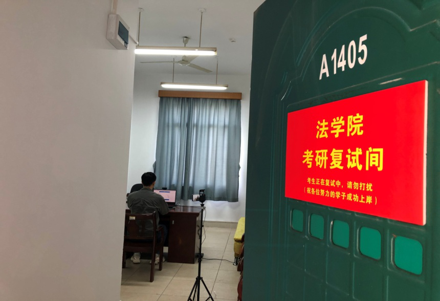 “最近疫情非常严重,复试的时间也很紧张,我们一时半会也找不到合适场所进行复试。很感谢学院给我们提供了复试的场地,还给我们提供了相关的复试设备,让我们能够安心复试。非常感谢学院的关心!”18级考研学生梁国庆这样说道。