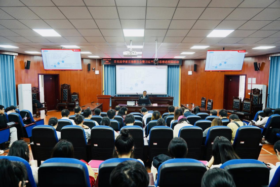 2024年11月15日下午14:30,由长沙学院与长沙市法学会联合主办的“‘百名法学家百场报告会’暨习近平法治思想进校园”活动在长沙学院法学院模拟法庭顺利举行。此次活动旨在深入贯彻落实中共中央组织部、中共中央宣传部、中共中央政法委员会等六部门联合印发的《关于印发〈2024年“百名法学家百场报告会”法治宣讲活动指导意见〉的通知》精神,推动习近平法治思想深入基层、深入人心。