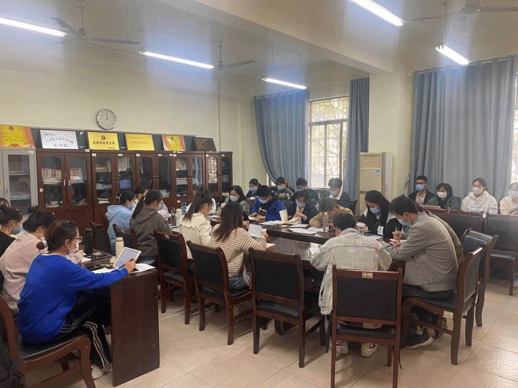 会议前夕,由支部党员陈玲玲和邓沛怡带领与会人员对《习近平谈治国理政(第四卷)》进行研讨学习。陈玲玲从“学习内涵、理论依据、实践要求”三个方面阐述了坚持党的全面领导的重要意义。邓沛怡通过“政府继续保留绿皮火车和国家免费提供新冠疫苗”这两件事阐明了我党根基在人民,血脉在人们,党员也理应服务于人民。随后,与会党员展开激烈讨论。谢宇同志他表示,“无数事实反复证明,中国共产党所具有的无比坚强的领导力,是风雨来袭时中国人民最可靠的主心骨,党政军民学,东西南北中,党是领导一切的。”