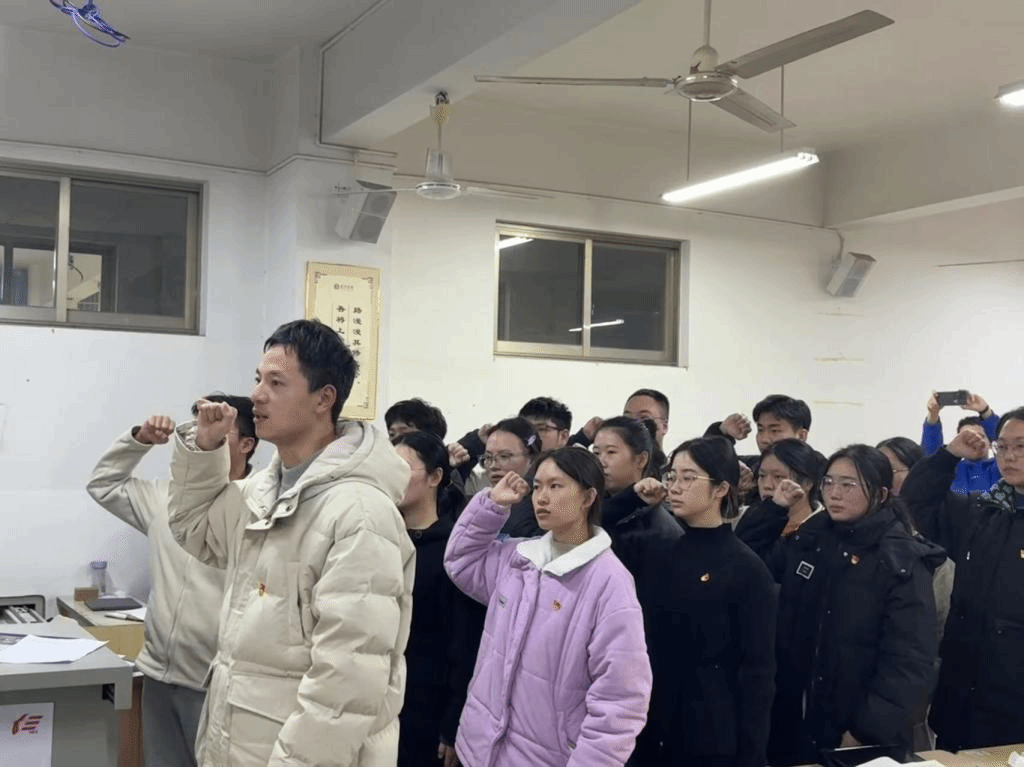 会议最后,学生支部党员们胸前佩戴着党徽,面向党旗,举起右拳,郑重宣读入党誓词。张正东同志、谭敏捷同志表示欢迎新鲜血液的注入,期望新同志能积极发挥党员先锋模范作用。组织上入党一生一次,思想上入党一生一世,保持党员思想纯洁、思想先进,需要常补理想信念之“钙”,把信仰的“种子”植入灵魂,打造出一支政治强、理论精、敢担当、作风正的高素质学生党支部队伍。